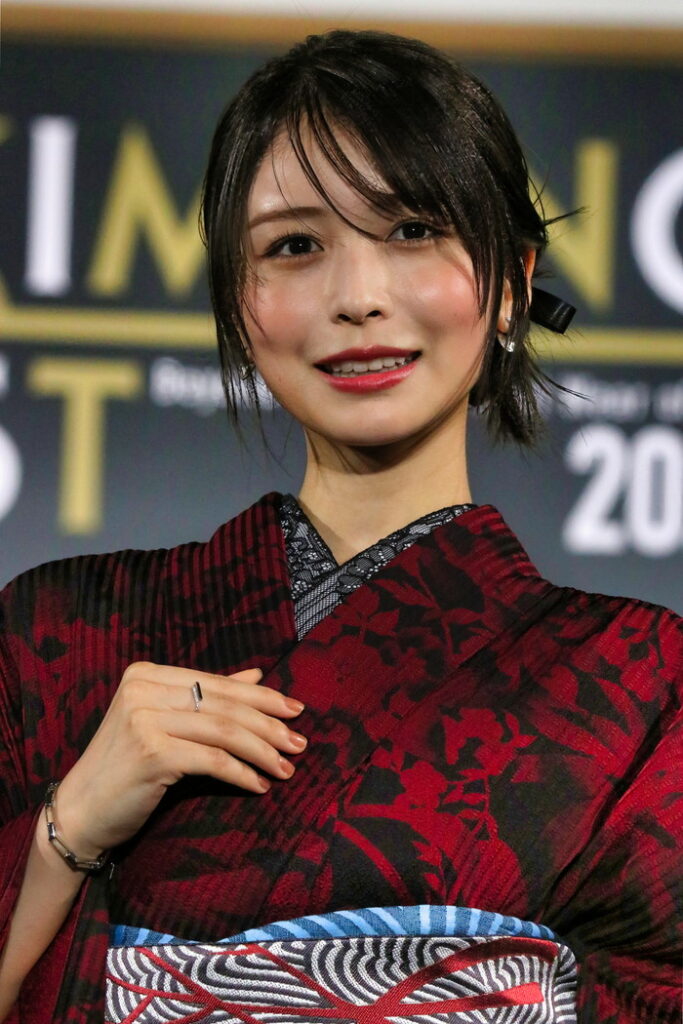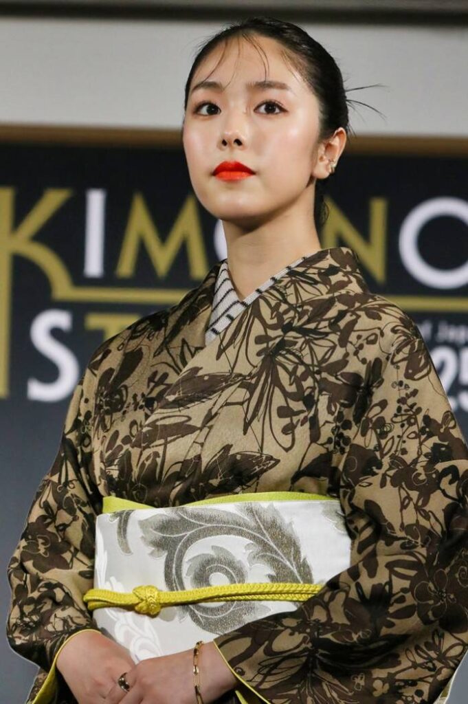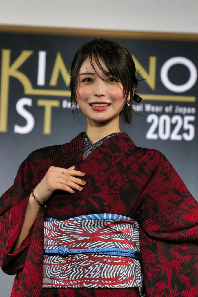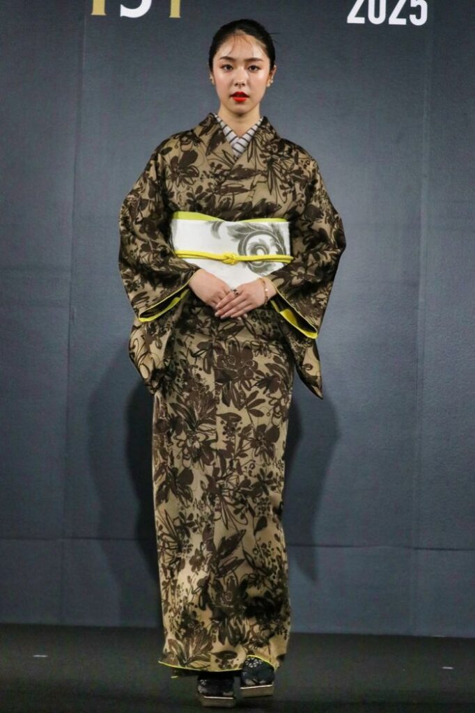 授賞式では、ベージュ地に墨色のフラワーモチーフをあしらったワンピース風の着物に、甘さを抑えたモチーフの帯を合わせ、イエローの小物と光沢のあるボーダーの半襟でランウェイを歩いた。唐田さんは「色味やシックな雰囲気が好きで、個性として楽しめる嬉しさを体感しました。着物の佇まいに見合う自分になれるよう努力したい」と語り、「日常生活を充実させることを大切にしています。サスペンス作品にも挑戦したい」と今後の意欲を示した。