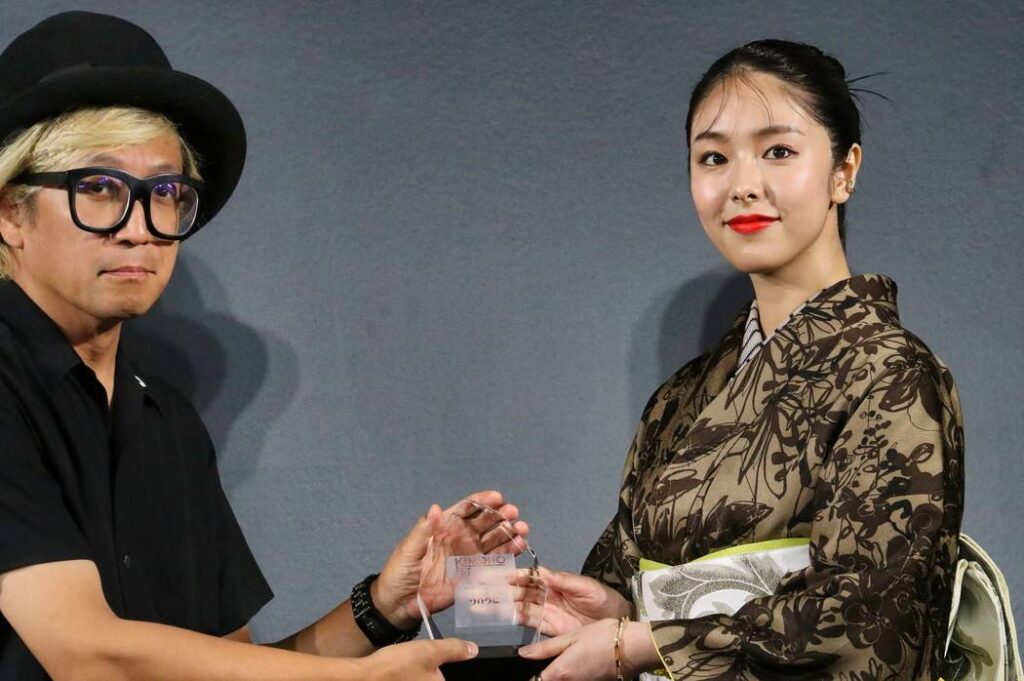 唐田えりかさんは、作品ごとに鮮烈な印象を残す稀有な表現者として評価され、自由さと芯の強さ、挑戦心を次代の着物に重ね合わせたいとの理由で選ばれた。