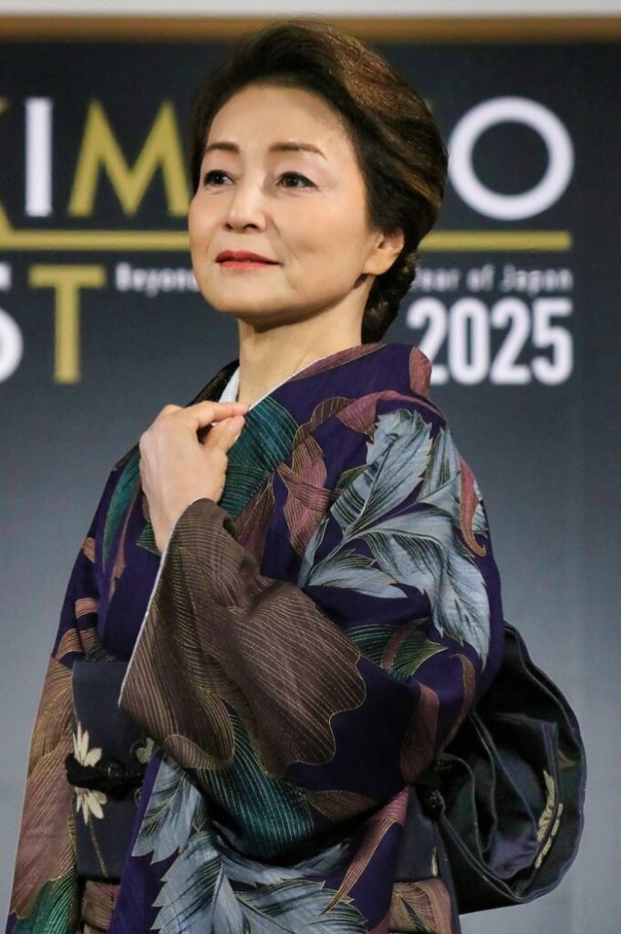 仁科亜季子さんは、歌舞伎俳優の家に生まれ、気品ある佇まいと、闘病を乗り越えて前向きに生きる姿勢が「気楽に」という言葉と重なり、大人の魅力と着物の美しさを体現したことが受賞の理由となった。