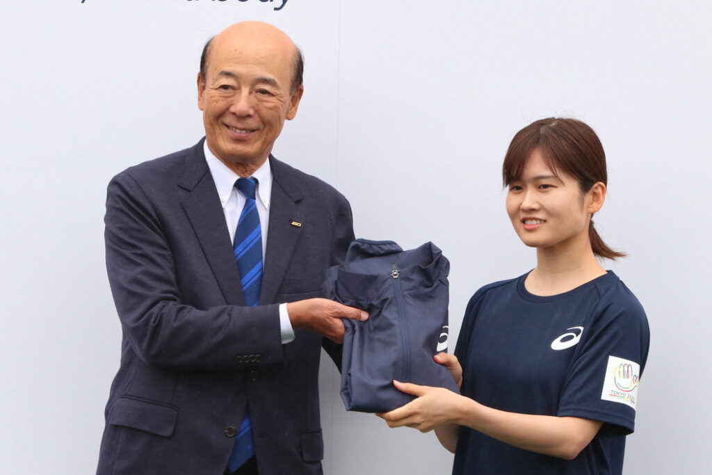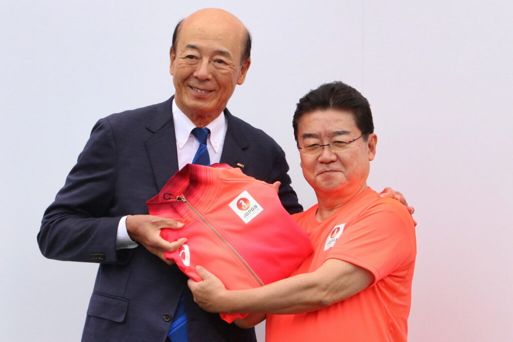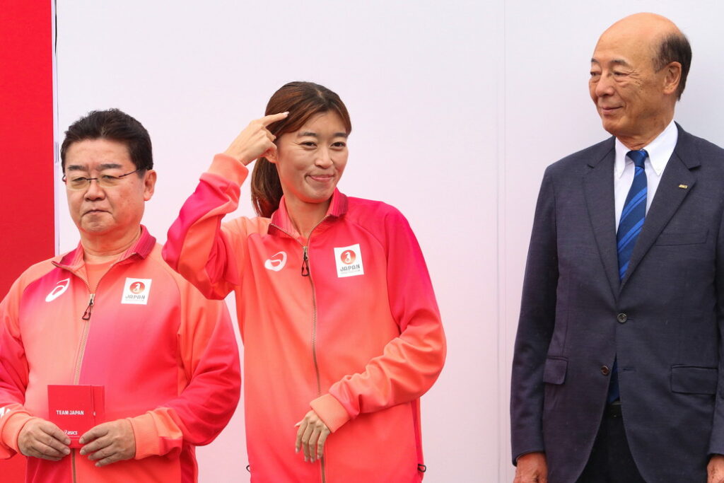 贈呈式では、日本選手団副団長の粟野達人さんと、デフ陸上女子中距離代表でメダル獲得を目指す岡田選手が、選手団を代表して公式ユニフォームを受け取った。