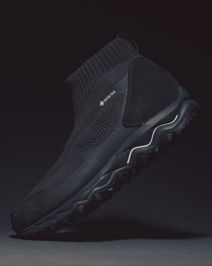 ミズノ(Mizuno)のライフスタイルカテゴリー「ミズノスポーツスタイル」は、2023年4月に発売した「WAVE MUJIN TL MID GTX nonnative」のオールブラック仕様を復刻する。発売日は2025年10月25日。ブラックは真黒ではなく、あえて「墨黒」とし、素材ごとに異なる色調を組み合わせて奥行きを持たせた。