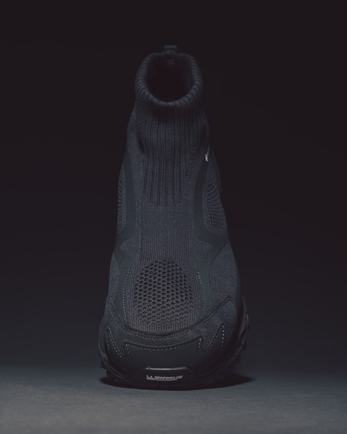 「WAVE MUJIN TL」は2007年にデザインされたが、当時は商品化されずアーカイブに収められていた。近年のアウトドア需要の高まりを背景に、ミズノスポーツスタイルから再登場。アウトソールにはフランスの自動車タイヤブランド、ミシュラン製のラバーソールを用いるなど、本格的な仕様を備えている。