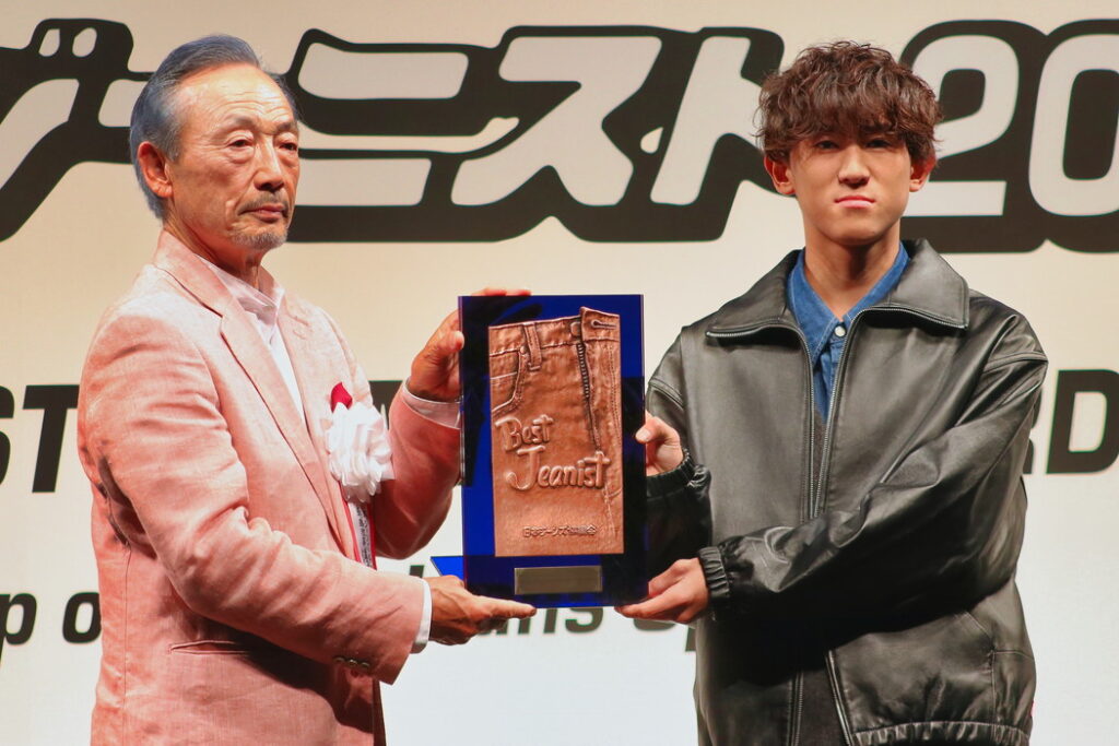SNS調査でランダムに選ばれた10代から50代までの5000人(男女比50対50)の投票結果をもとに、今年最もジーンズが似合う著名人を男女各1人ずつ選出する一般選出部門では、男性はアイドルグループ「スノーマン(Snow Man)」のメンバーで俳優の目黒蓮さん、女性は俳優の今田美桜さんが選ばれた。