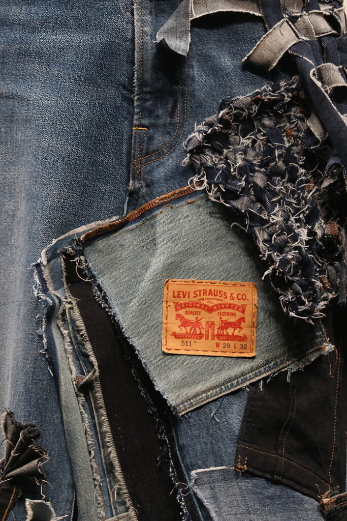 授賞式では家族や友人、スタッフから集めたデニムを切りはぎして制作した特製パンツで登壇。「今日という記念すべき日に、どんなジーンズを履いて登壇しようかと考えたとき、スタイリストさんと相談して、『せっかくだったら、いろんなジーンズを切りはぎして一着にしてみたら』と提案してくださったんです。それならばと思い、私が大切にしている家族や親友、スタッフの皆さんにお願いして、サイズが合わなくなって着なくなったデニムをたくさん送ってもらいました。そのジーンズをつなぎ合わせて、この一着を作っていただいたんです。