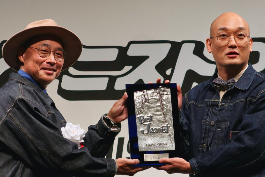 みなみかわさんは「皆さん、見てください、この並び。やりましたね、僕。全く違和感のない並びでしょ。美しいでしょう。史上初のスキンヘッド芸人が、ベストジーニスト賞をいただきました。衣装でも結構着ることが多いので、本当にうれしいです」と笑いを誘い、「皆さん、今日はすごく華やかに着飾っていらっしゃって、そんな中で僕はいつも通りの服装で来てしまって、ちょっと恥ずかしいです。実は出る前に、初めてお会いしたKōki,さんに『お父さん(木村拓哉さん)の余っているデニムがあったらください』と言ってしまって、松本さんに怒られました」と明かした。