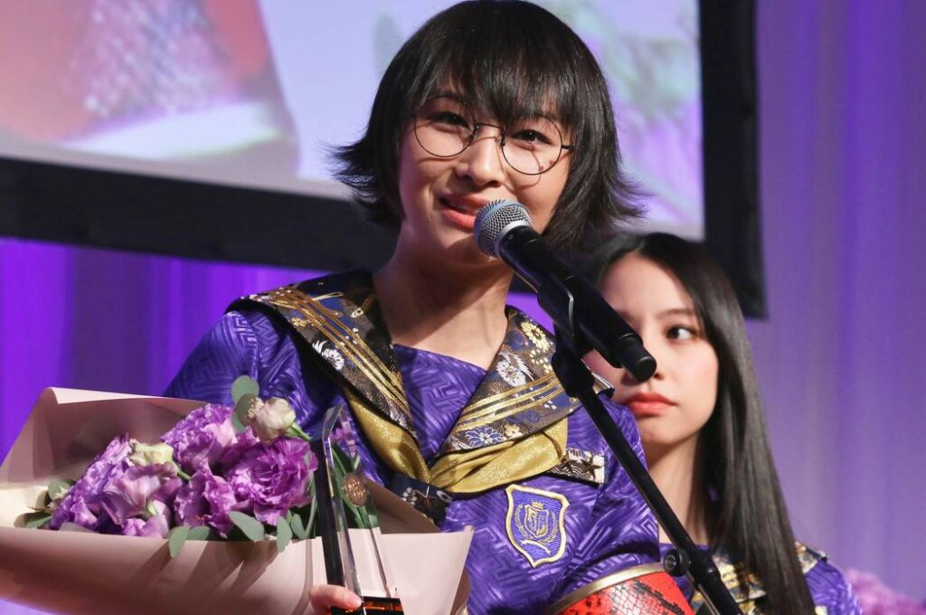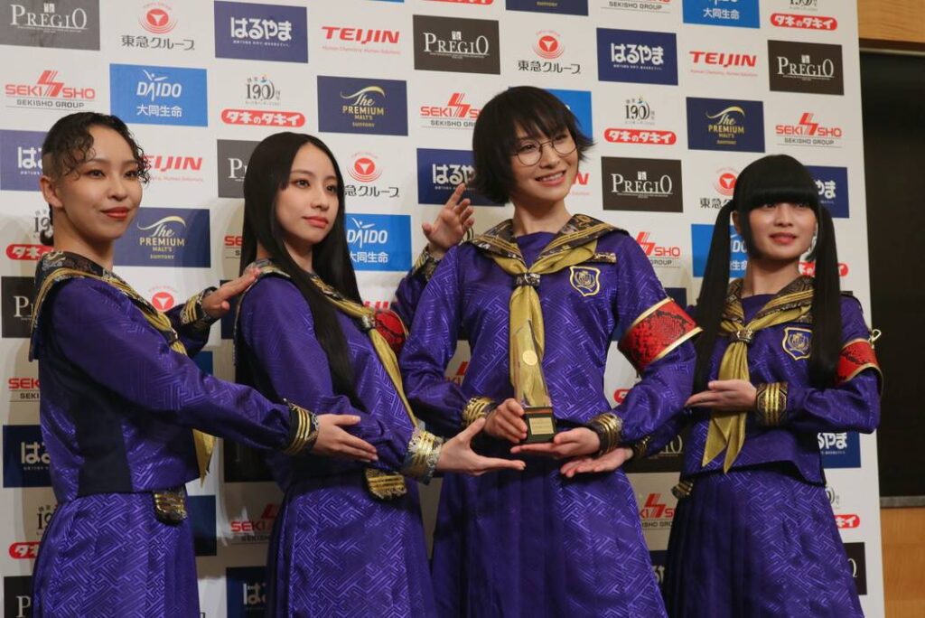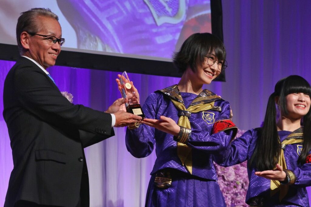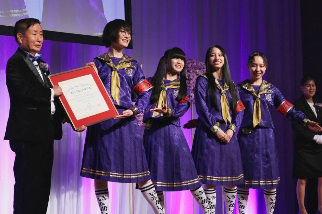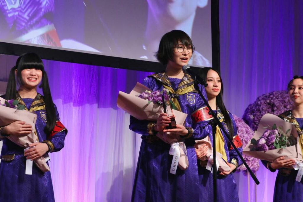 スズカ(SUZUKA)さんは「インターナショナル部門として受賞できたこと、本当に光栄に思っており、胸がいっぱいです」とあいさつ。当日の真っ青なセーラー服については、「いつもの自分たちなんですけれども、この真っ青に染まったセーラー服は、私たちが“青春日本代表”と自称している中で、青春の色に染め上げたものです。今年で結成10周年となりますので、私たちがさらに一歩を踏み出す姿を表現させていただきました。」と説明した。