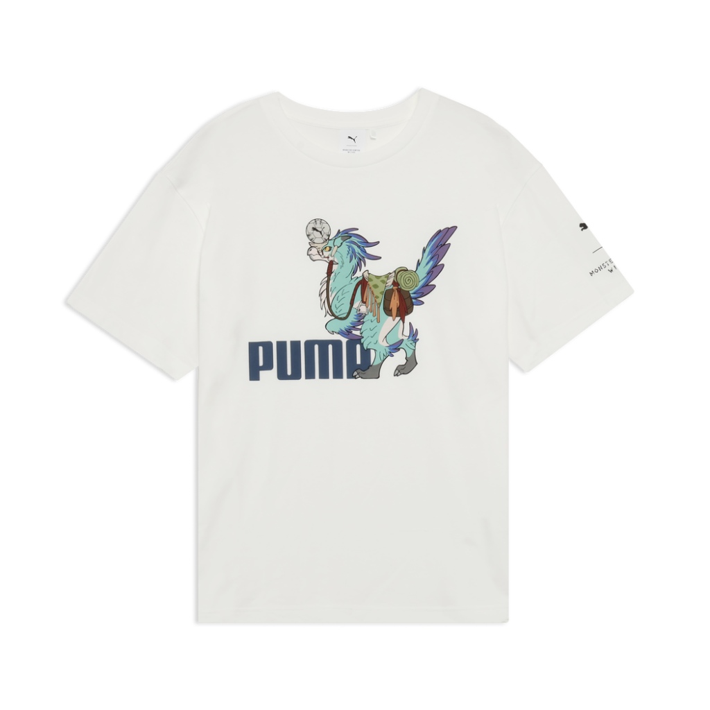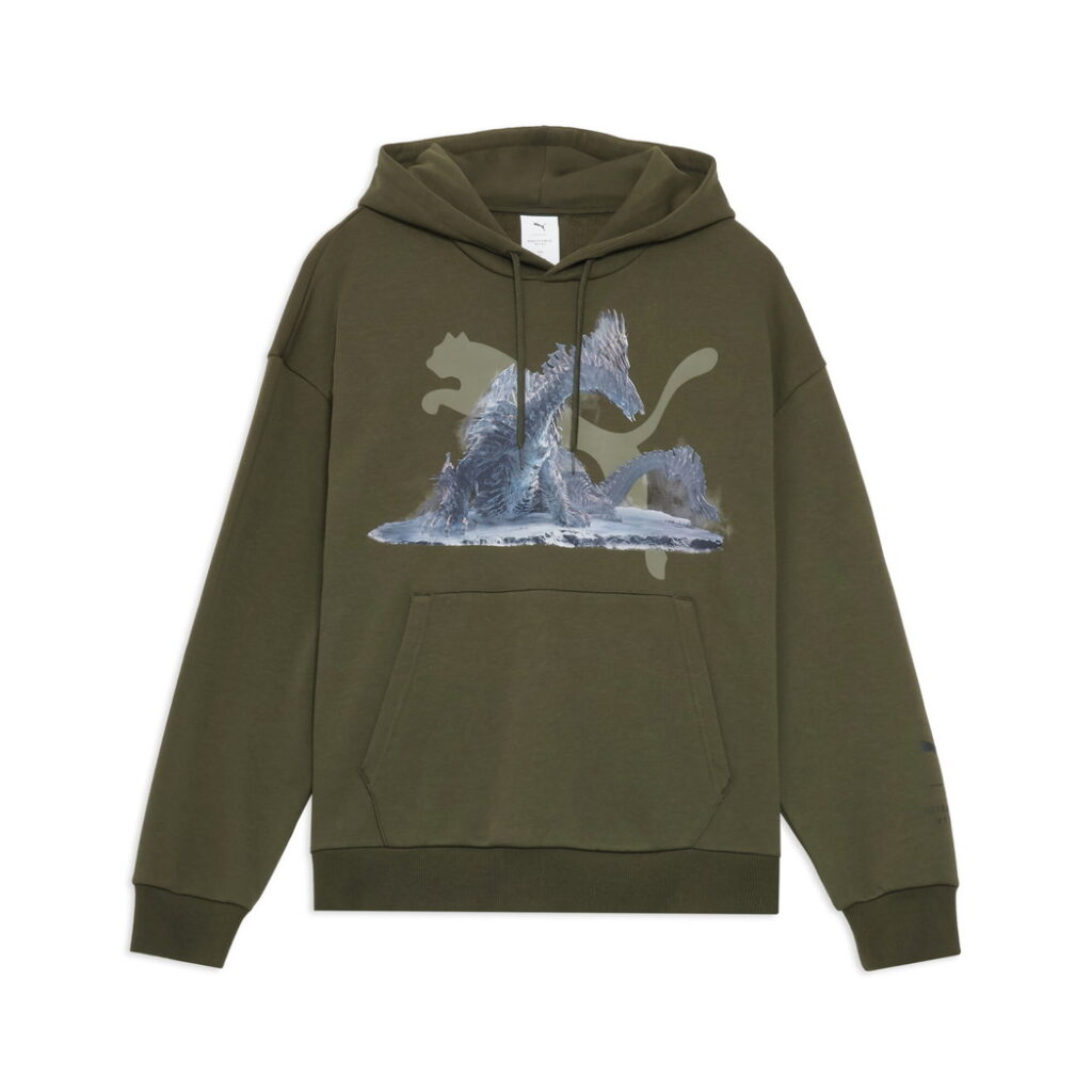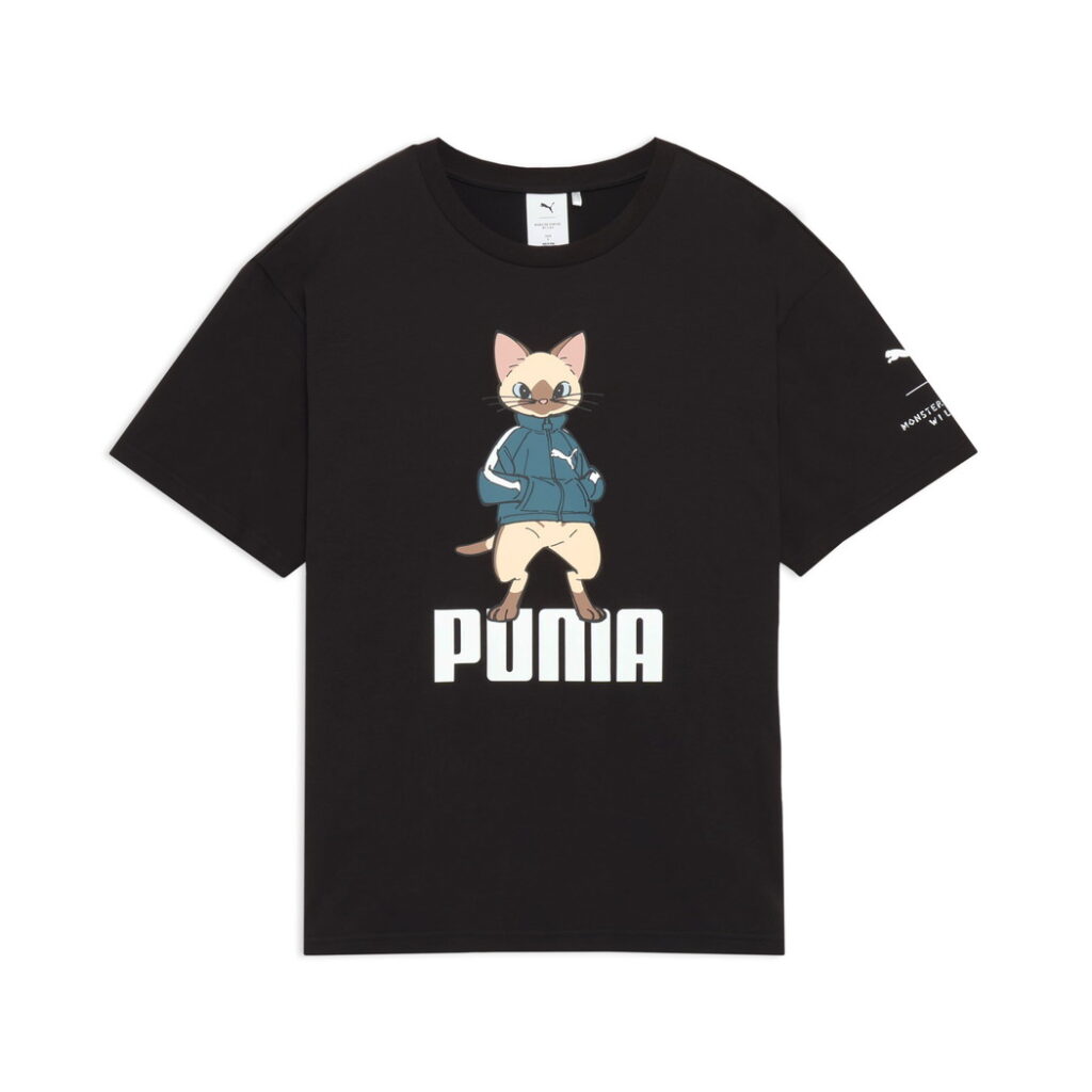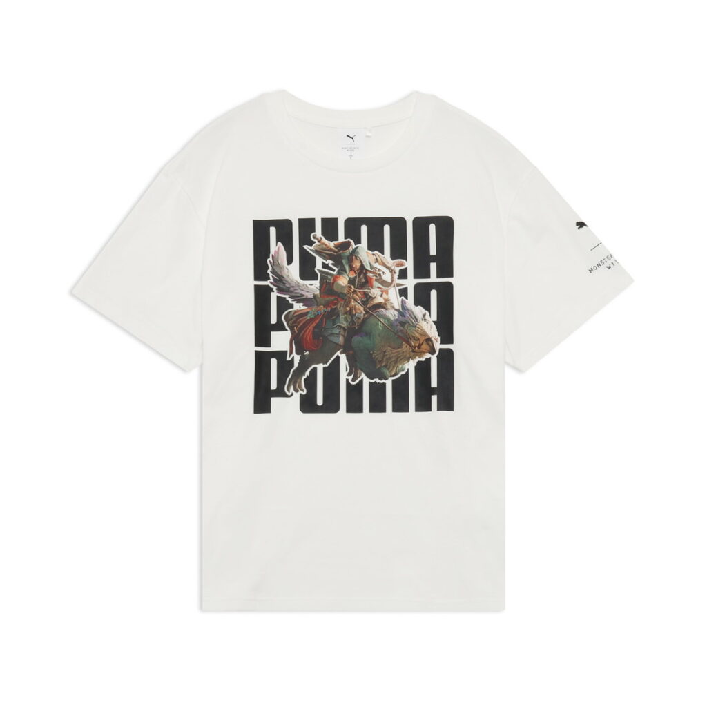 アパレルでは、作中の各エリアを象徴するモンスターをあしらったフーディーをはじめ、モンスターの質感を表現し、胸元に調査隊エンブレムを配したAOPトラックジャケットを展開する。プーマの「T7」を着た描き下ろしアイルーをデザインしたTシャツや、プーマキャットの上に乗ったアイルーをあしらったフーディーもラインアップする。