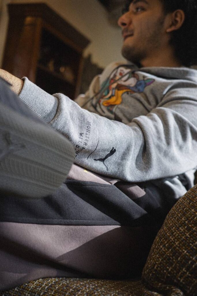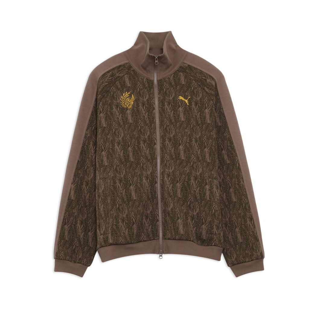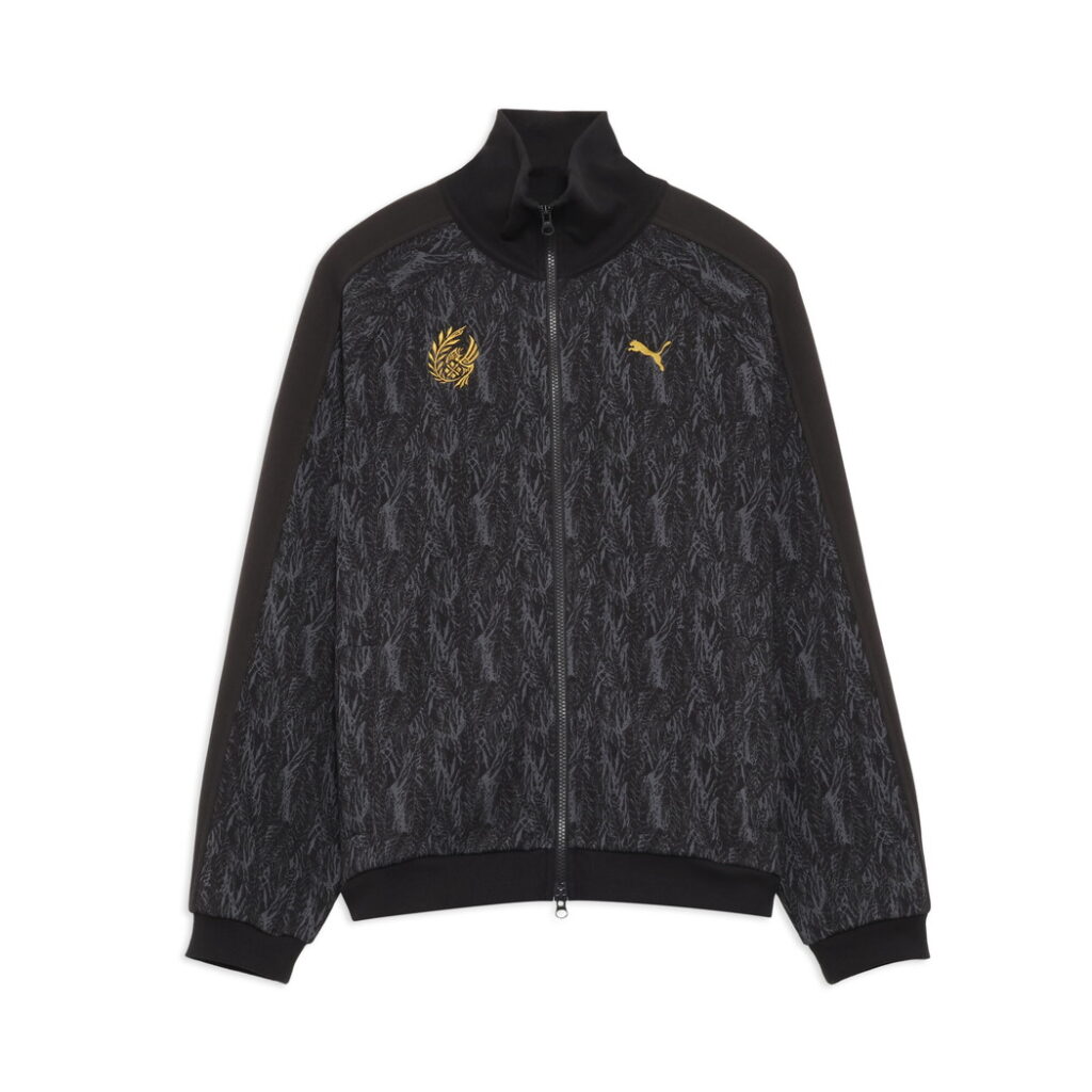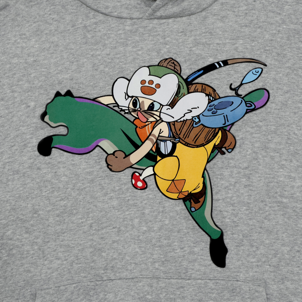 アパレルでは、作中の各エリアを象徴するモンスターをあしらったフーディーをはじめ、モンスターの質感を表現し、胸元に調査隊エンブレムを配したAOPトラックジャケットを展開する。プーマの「T7」を着た描き下ろしアイルーをデザインしたTシャツや、プーマキャットの上に乗ったアイルーをあしらったフーディーもラインアップする。