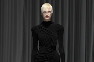 一方で、パデッドウールやシルクリネン、透明感のあるシルクジョーゼット、シアーなテクニカルレイヤーが軽やかなアクセントとして現れ、コレクションにコントラストを与える。さらに、シルクフリースが静かで包み込むような柔らかさを添えている。