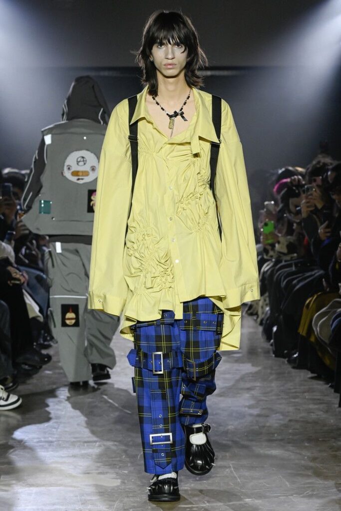 同ブランドの中核にはパンクがあり、末安の眼差しは常に「矛盾」に向けられてきたという。偶然と必然、混沌と静寂、大胆さと繊細さ、かわいらしさとハードコア。対立する通念をデザインを介して包摂し、それぞれの特質を示すことを特徴とする。末安は、ファッションとは混沌の中で心を癒やし、秩序を取り戻すための手段だと語っている。