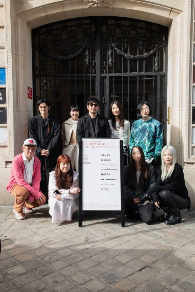 今回参加したのは、TOKYO FASHION AWARD 2026受賞のカカン(KAKAN)、ムッシャン(mukcyen)、ヨウヘイ オオノ(YOHEI OHNO)、ユウショウコバヤシ(yushokobayashi)と、2025受賞のハトラ(HATRA)、リブ ノブヒコ(RIV NOBUHIKO)、サトル ササキ(SATORU SASAKI)、タン(TAN)の計8ブランド。